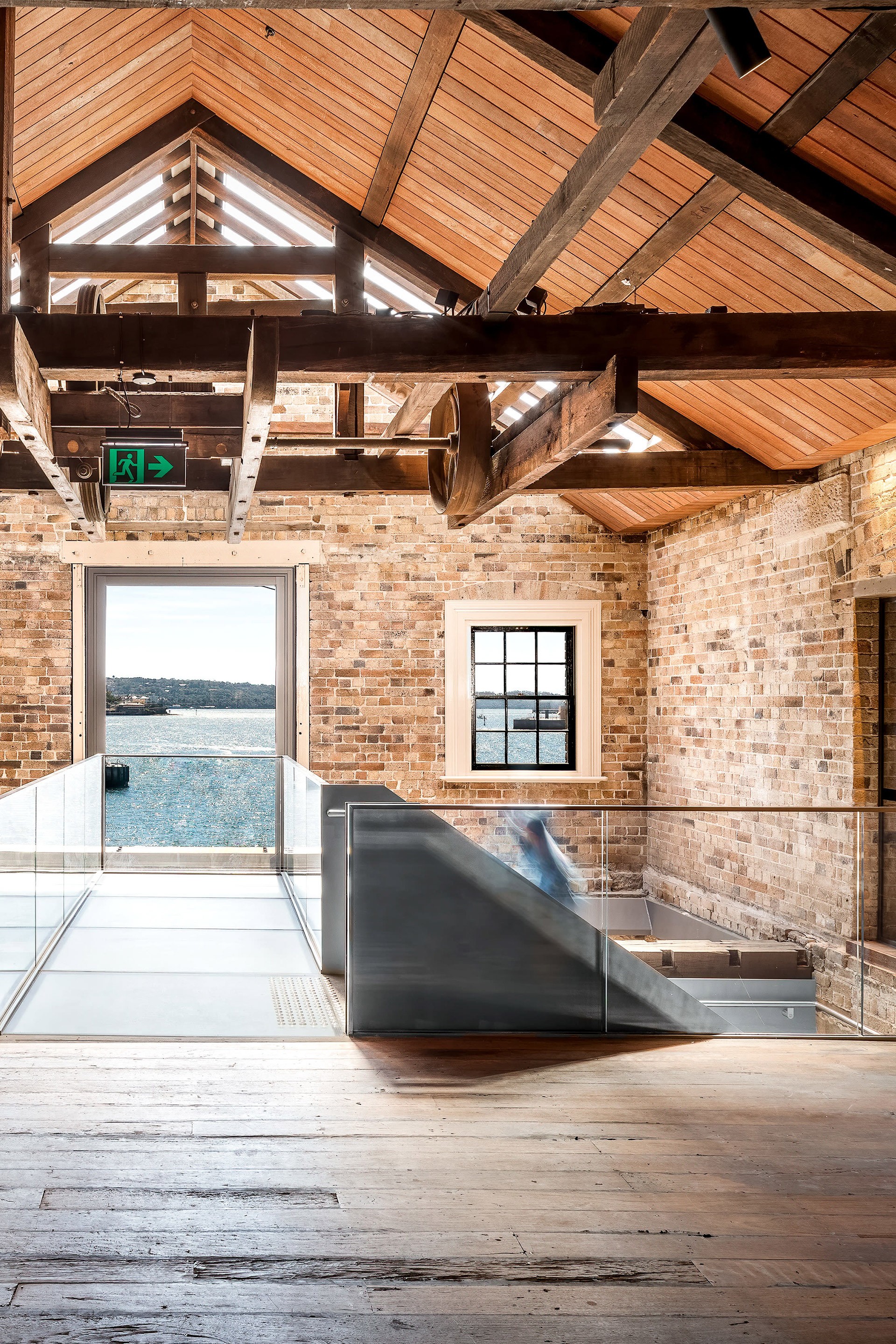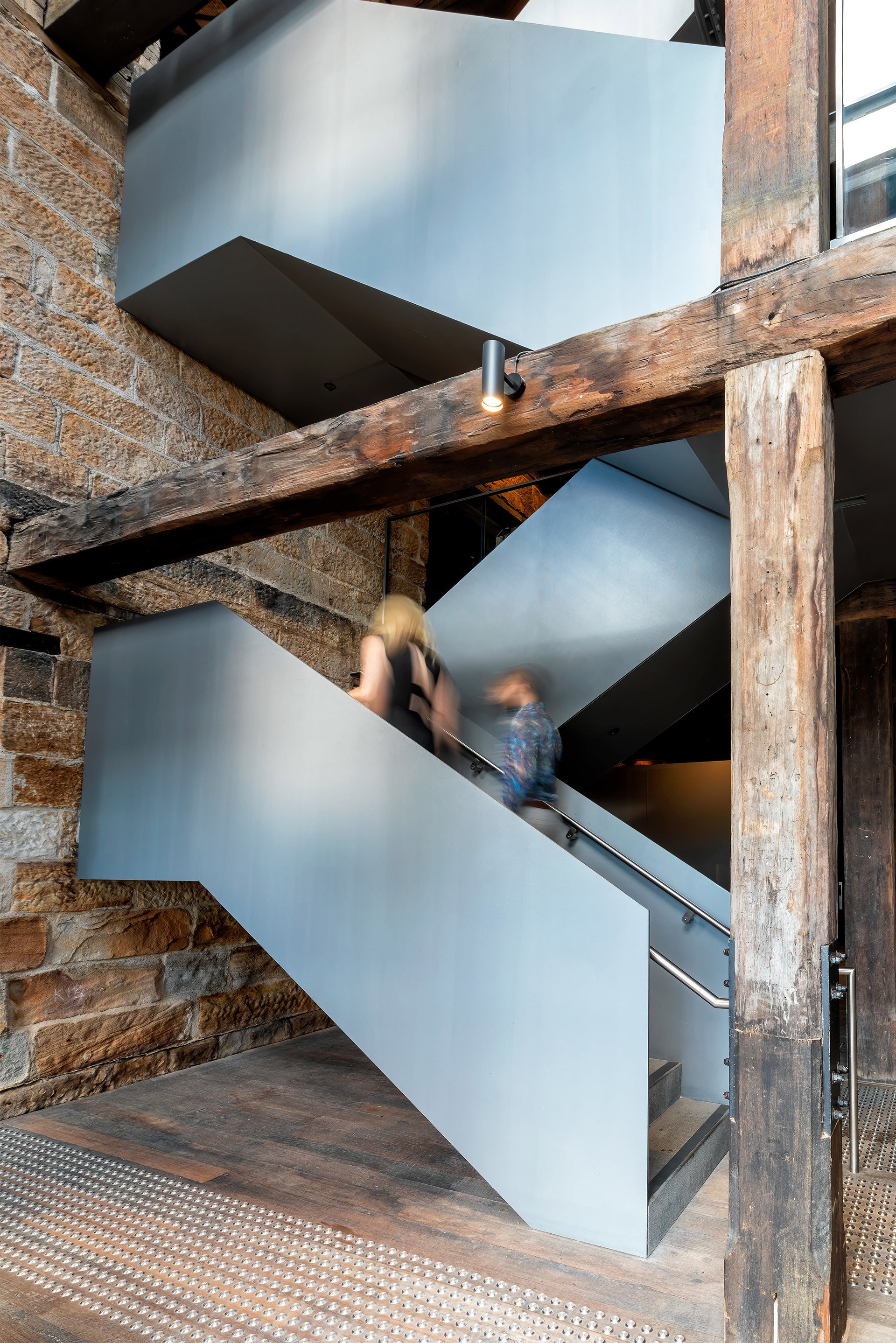 In a challenging built environment with heritage restraints and building anomalies, Campbell’s Stores underwent a restoration that included the installation of six flights of stairs with minimalistic steel plate balustrades to reduce visual impact and fit within existing joists and beams. Glass void edge balustrades complemented the stairs, while steel and glass lift shafts were added to three of the bays. A standout feature of the project was the glass-floored bridge, providing visitors with unobstructed views of Circular Quay. Additionally, heavy waler beams were installed to restrain the building's facade, ensuring both structural integrity and historical preservation.