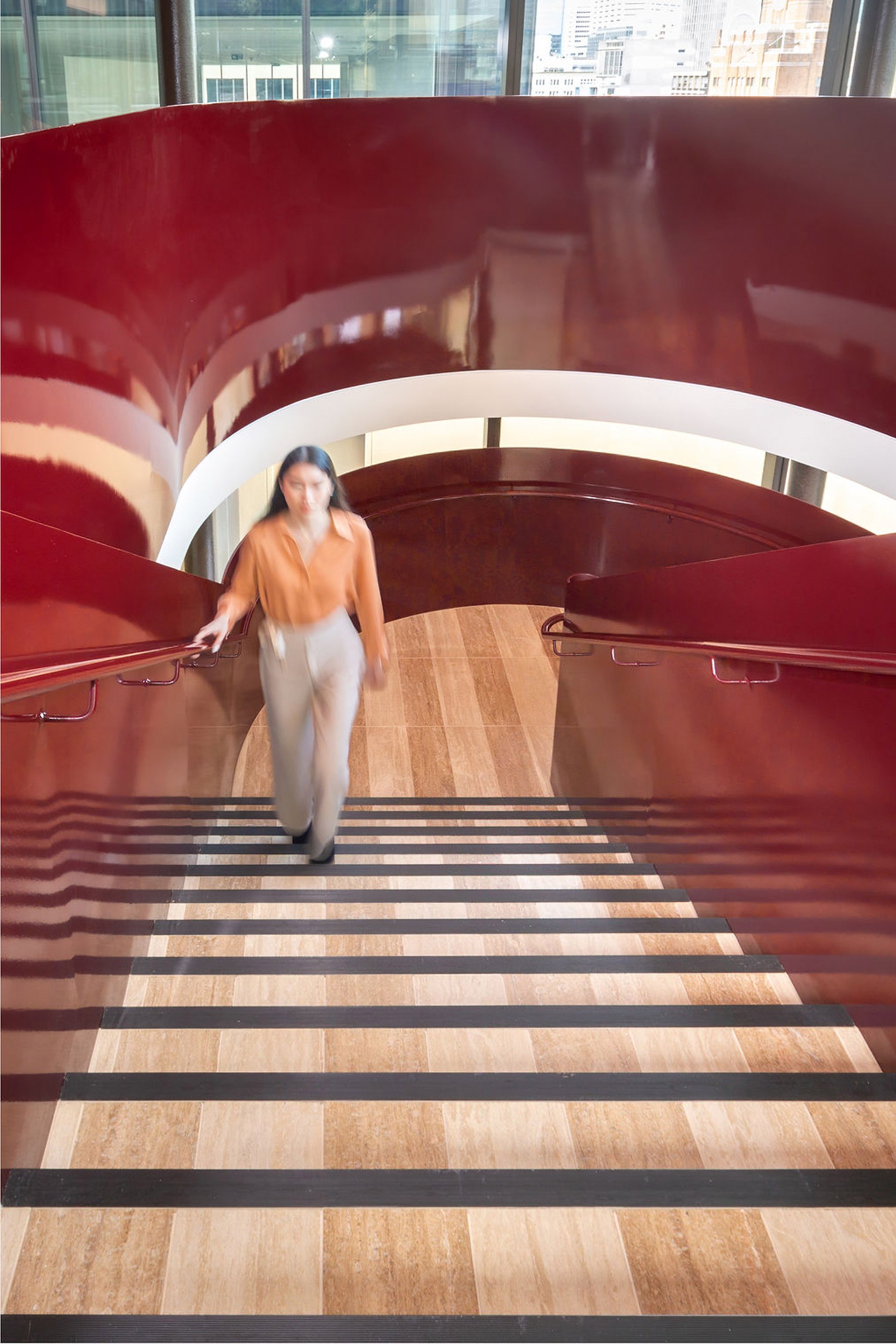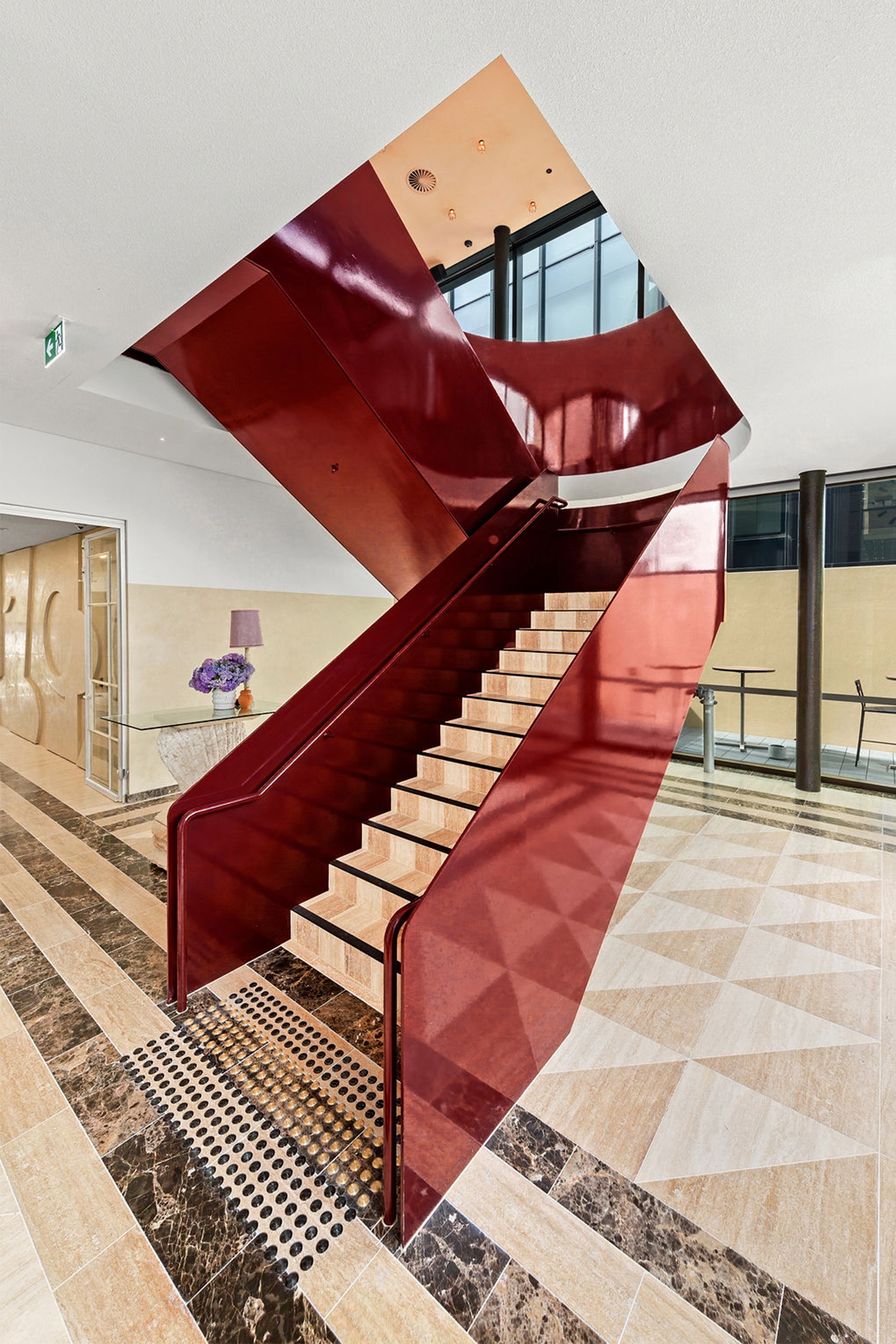 The feature staircase, with a floor-to-floor height of 4260mm, includes a graceful half-circle landing and sleek steel plate balustrades and handrails, carefully fabricated to enhance the space’s elegance. The entire experience transports patrons to a more liberated time, embracing theatricality and play, inviting people to linger and enjoy the journey between spaces.
